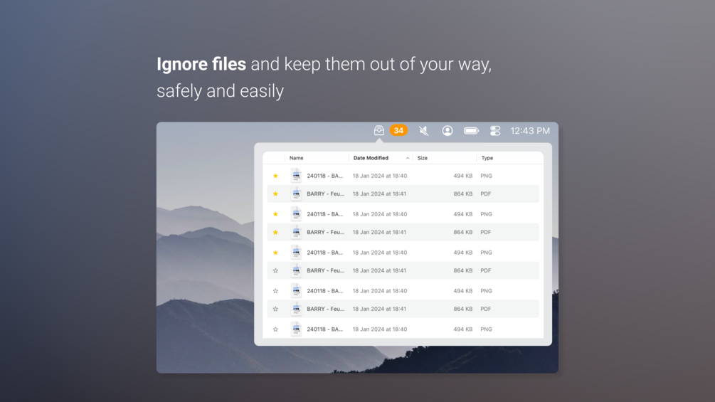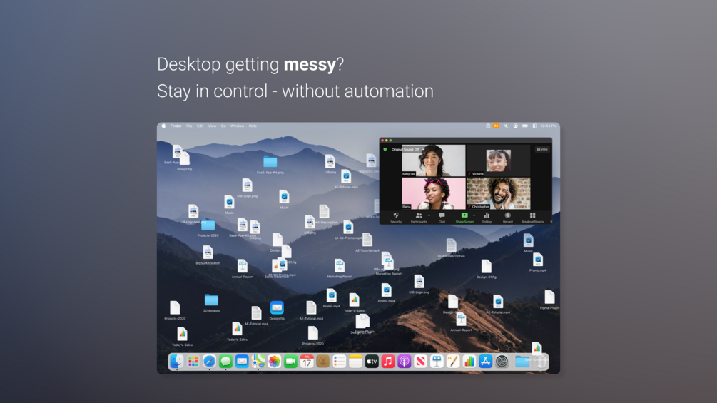 A tiny menu-bar app that helps you keep your Mac desktop tidy — without ever moving or deleting anything automatically.